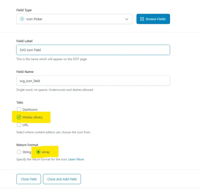 $iconACF field value and seeing what type it is. In this case,media_library - Getting the attachment file from the Media Library based on the ID